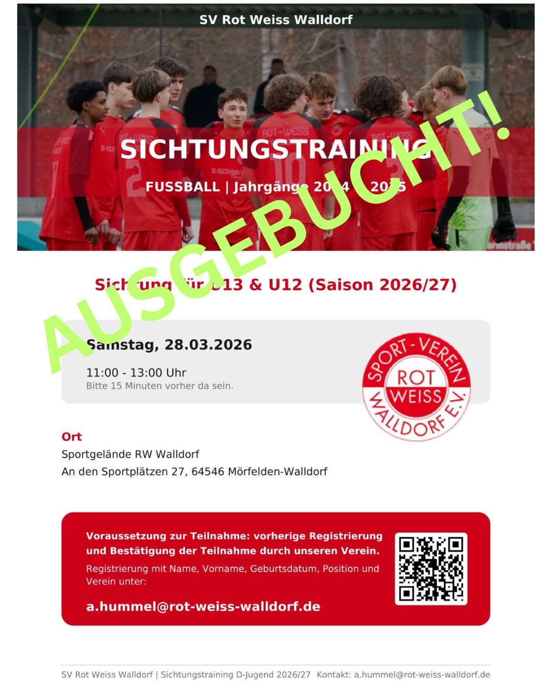 Eine große Bitte: RW Walldorf geht fair mit anderen Vereinen um. Daher möchten wir Euch bitten, Euren aktuellen Verein davon zu informieren, wenn Ihr bei uns ein Sichtungs- bzw. Probetraining machen möchtet.