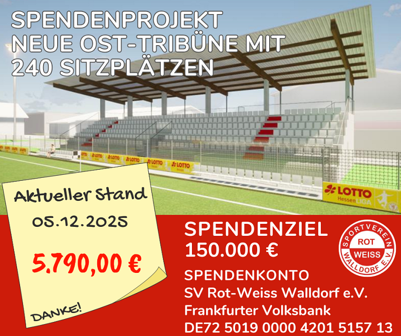 Der 11.11.2024 hat künftig für RW Walldorf eine weitere, richtungs-weisende Bedeutung erlangt. Neben Sankt Martin und dem Beginn der „närrischen Zeit“ bedeutet dieses Datum auch der „Startschuss und Freigabe“ für eine Stadionerweiterung mit einer überdachten Tribüne mit ca. 240 Sitzplätzen.