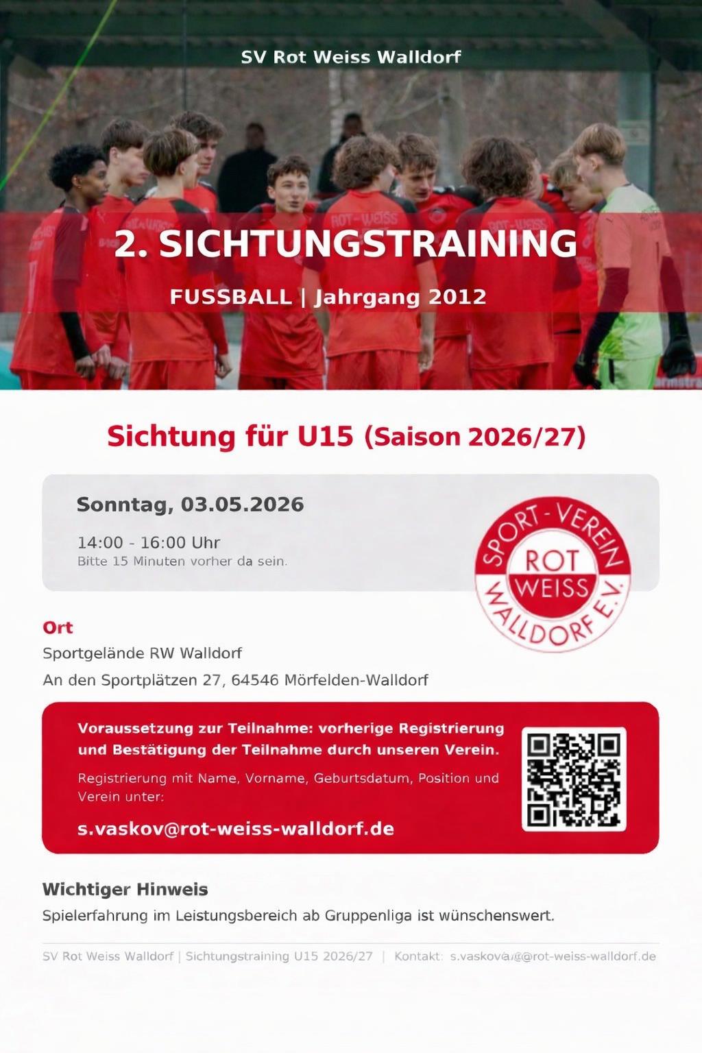 Sichtungstraining für den Jahrgang 20212, Saison 2026/27