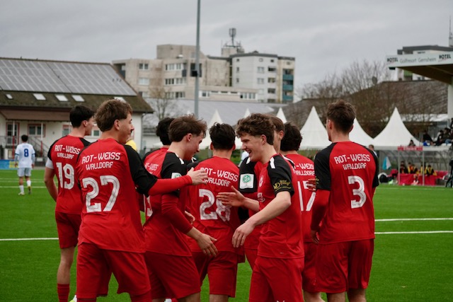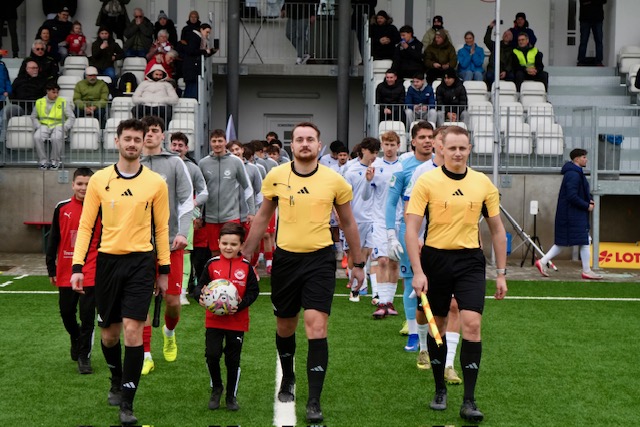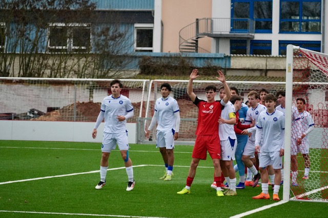 Zur Halbzeit stand fest: Gegen einen spielstarken Gegner war es bislang ein hartes Stück Arbeit. Doch unsere U19 hatte Moral bewiesen, sich von der Nervosität befreit und die passende Antwort auf den zwischenzeitlichen Ausgleich gefunden.