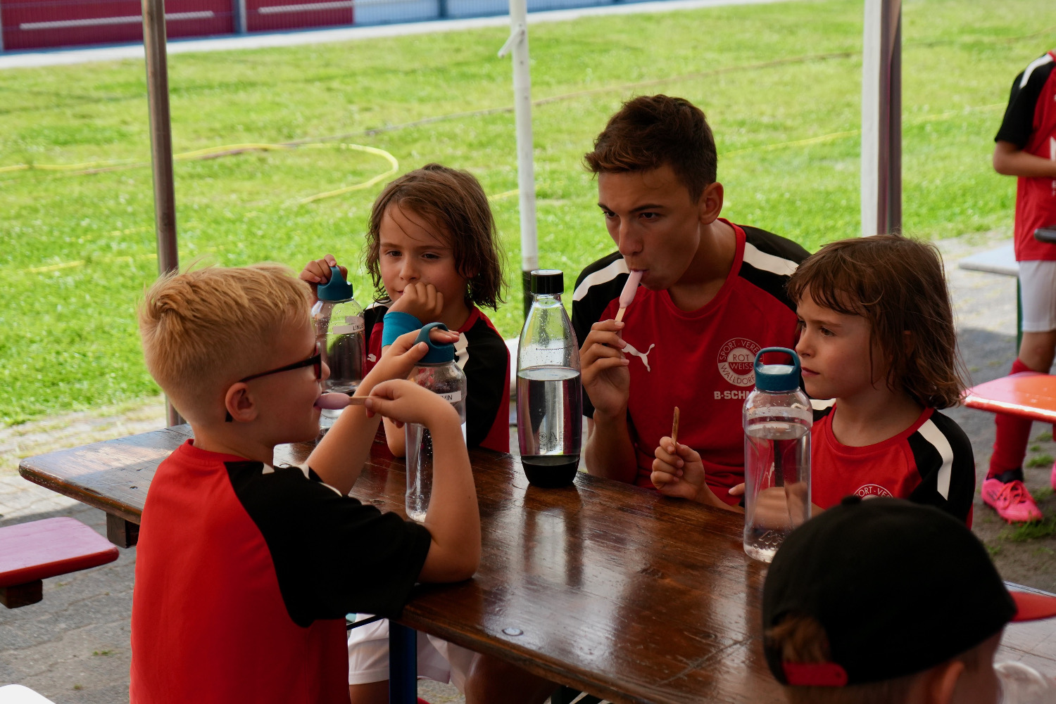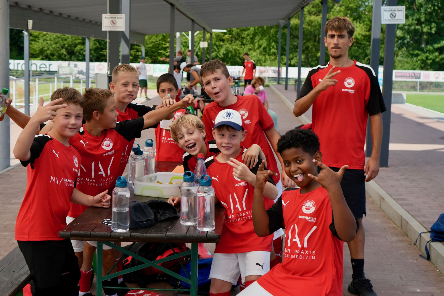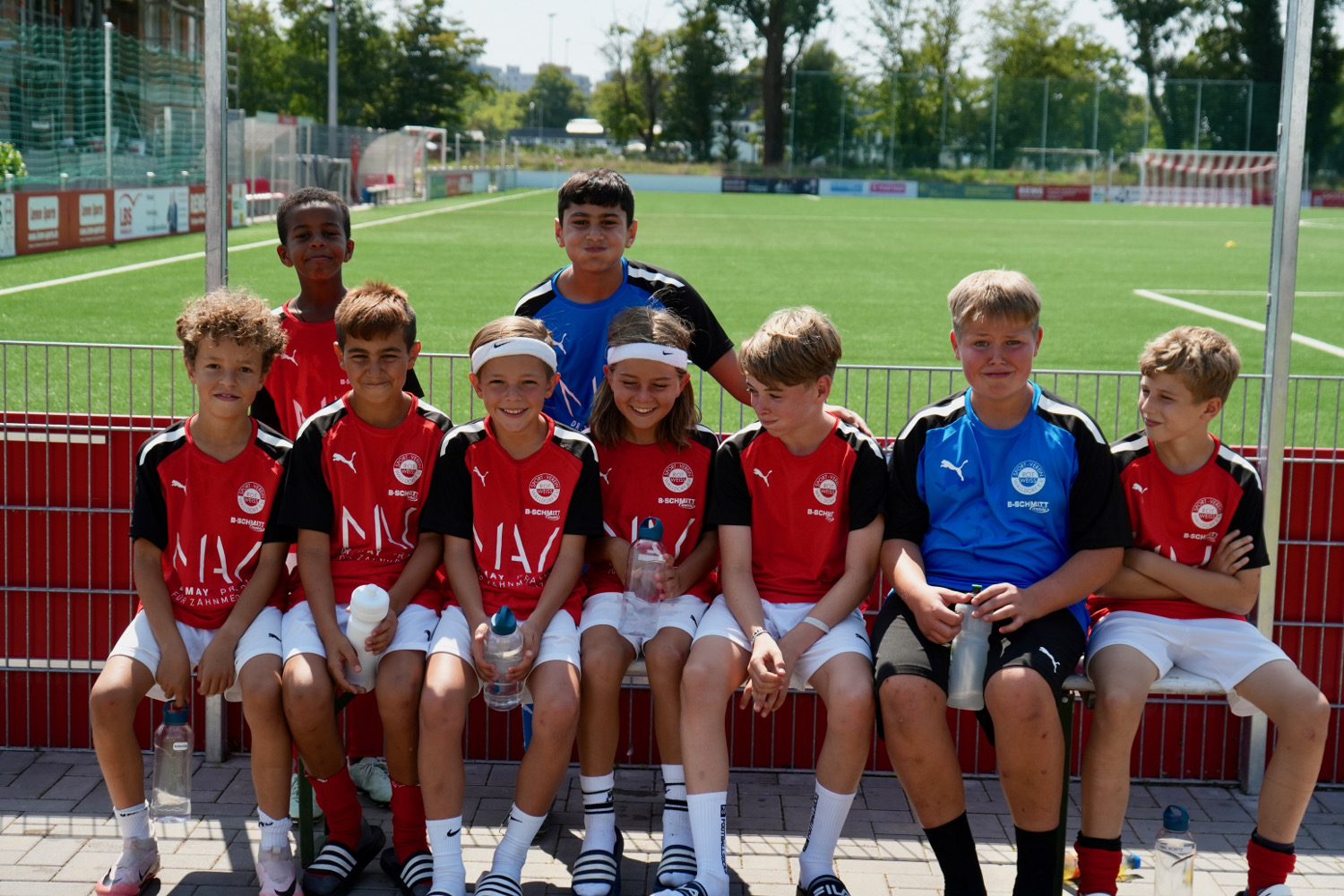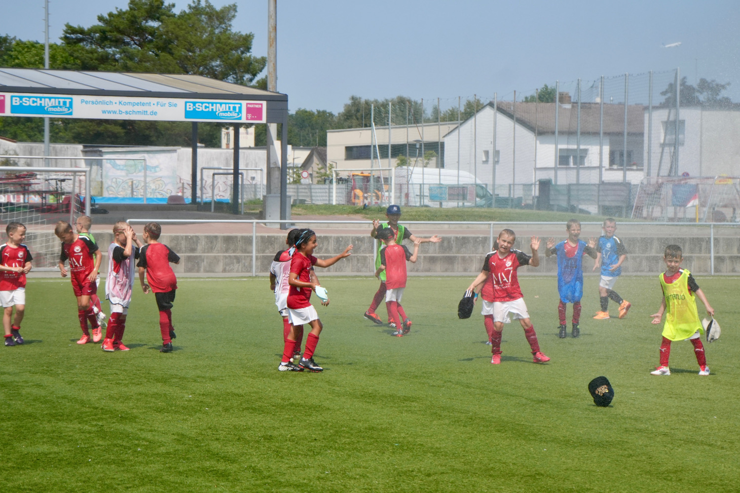 Gegen die sommerlichen Temperaturen halfen eine zeitweilige Abkühlung und kühle Erfrischungen, bei den Minis beschränkten die Organisatoren die Fußballschule wie gewohnt auf den Vormittag. Eine Familie aus Heusenstamm freute sich über das Angebot, denn ihr Sohn ist mit fünf Jahren für die meisten ähnlichen Angebote noch zu jung, in Walldorf war dies aber kein Problem.