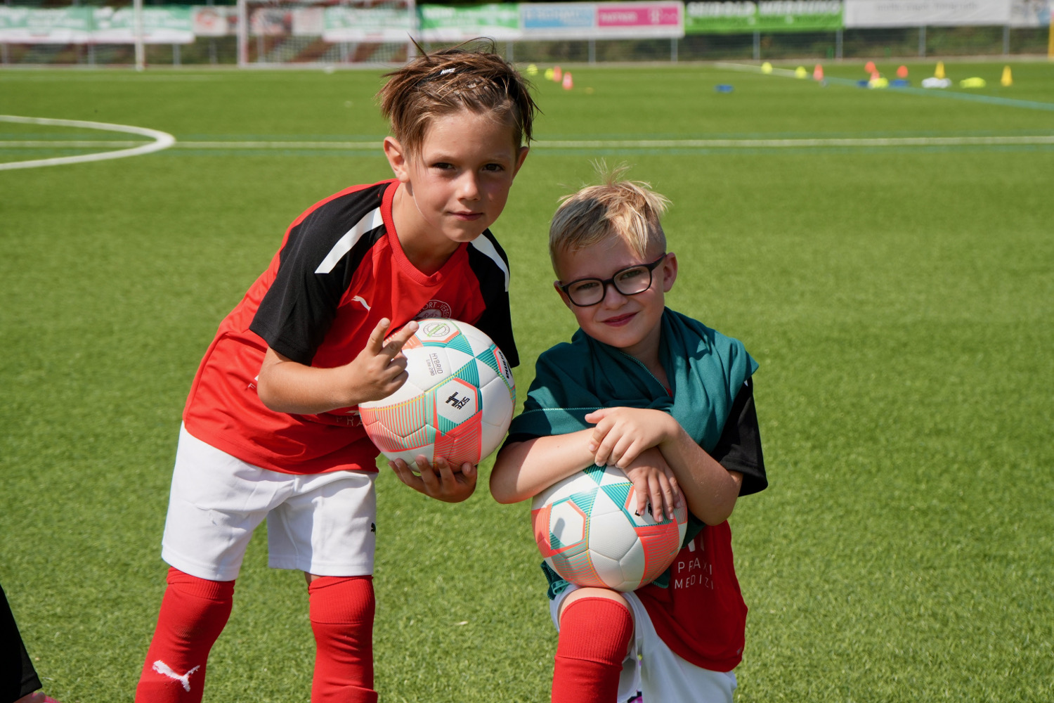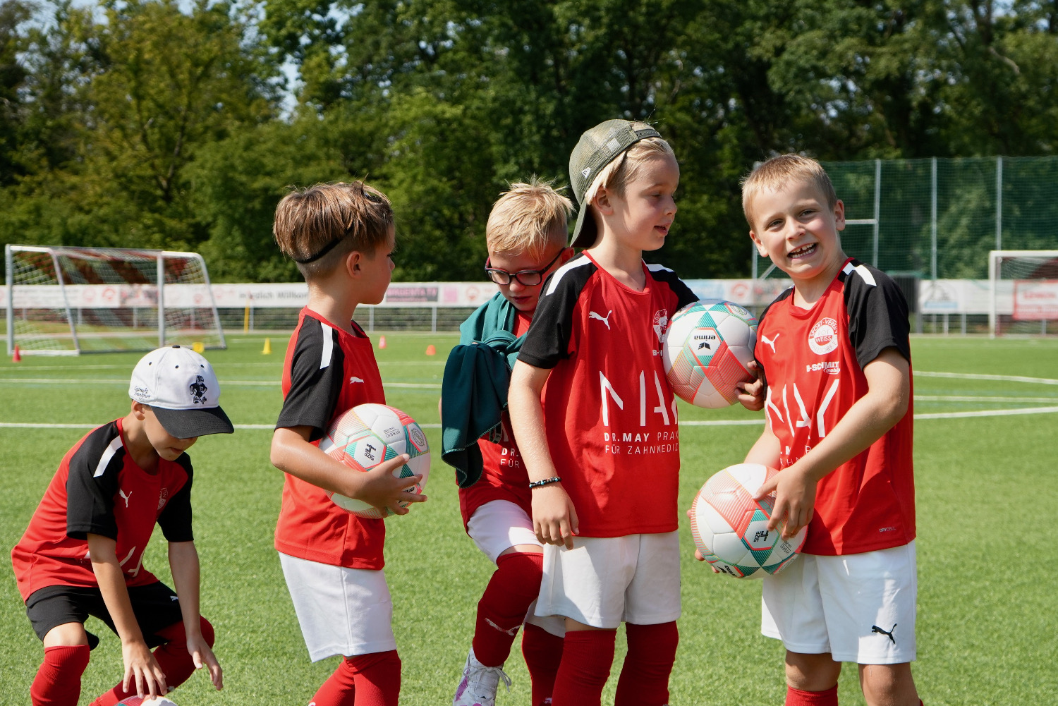 Zum Abschluss am Freitagnachmittag steht wieder das beliebte Spiel der „Minis“ gegen die Mütter an, anschließend dürfen die älteren Kinder gegen die Trainer ihr neu erworbenes Können demonstrieren. Und zeigen, ob in den Reihen der Teilnehmer vielleicht doch der nächste Musiala oder Wirtz schlummert.