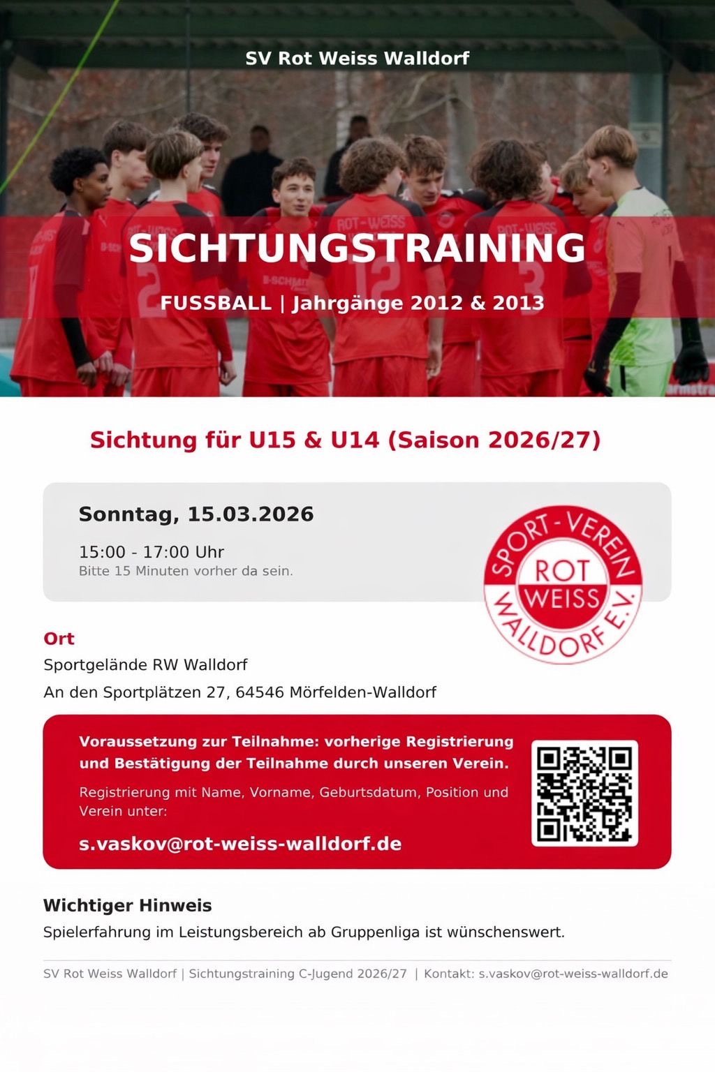Anmeldung zum Sichtungstraining an s.vaskov(at)rot-weiss-walldorf.de