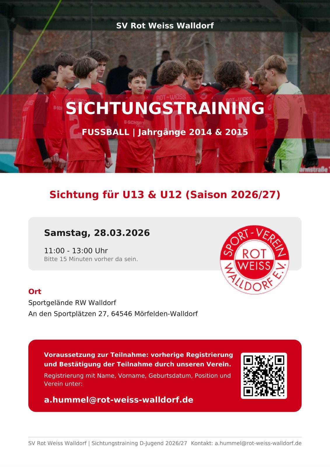Anmeldung zum Sichtungstraining an a.hummel(at)rot-weiss-walldorf.de