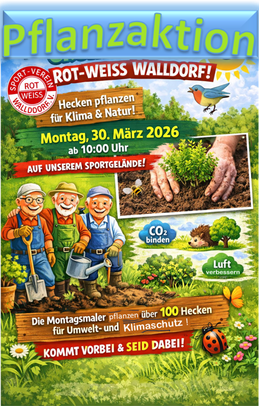 Am Montag, den 30. März 2026, werden ab 10:00 Uhr auf dem Vereinsgelände über 100 Heckenpflanzen gesetzt. Hinter der Initiative steht erneut eine besondere Gruppe innerhalb des Vereins - die sogenannten „Montagsmaler“. Die rüstigen Rentner kümmern sich seit mehr als zwei Jahrzehnten mit großem Einsatz um die Pflege des Sportgeländes – und gehen nun einen Schritt weiter.